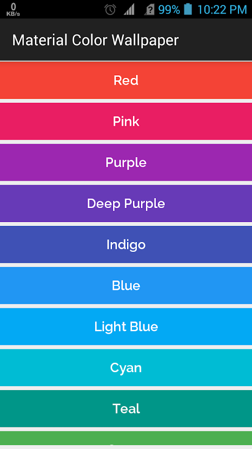 Material Colors come from Google's Material Design Guidelines.Google introduce Material colors as "Color is inspired by bold color statements juxtaposed with muted environments, taking cues from contemporary architecture, road signs, pavement marking tape, and sports courts. Emphasize bold shadows and highlights. Introduce unexpected and vibrant colors."